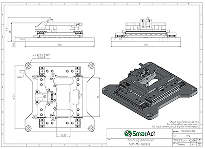 SOM-MS-180150は、SLCシリーズをベースに構成されており外形286x216x30mmでSmarAct社の中で最大の移動範囲を持つ顕微鏡ステージです。
